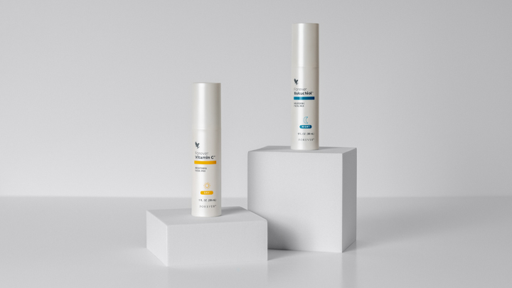 Forever Vitamin C og Forever Bakuchiol kan brukes sammen med alle de andre hudpleieproduktene våre. Du gjør dem enkelt til en del av morgen- og kveldsrutinen din.